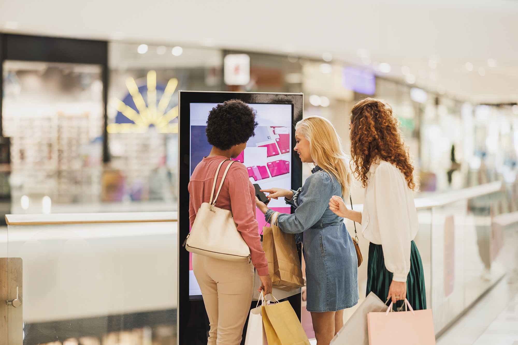 - Interactive kiosk screens which are 100% map or mixed with other content types.